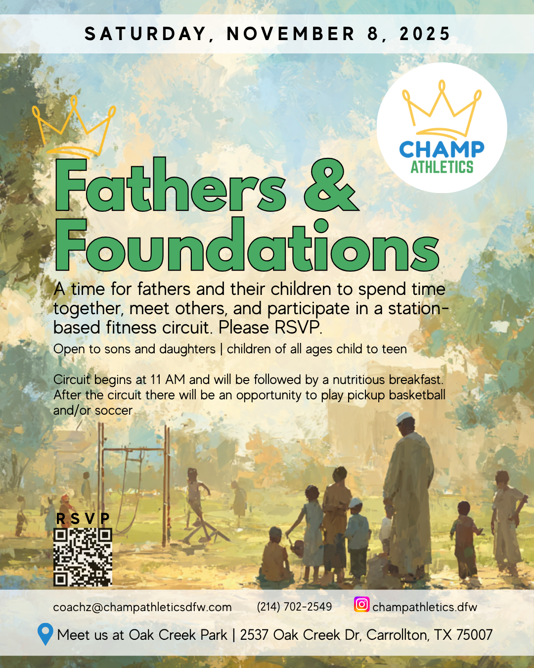 Fathers & Foundations is a time for fathers and their kids to spend time together. Not only do we want healthy kids but we want our adults to have foundation fitness levels to cultivate a healthy family. Based on foundation exercise movements that encourage longevity, fathers and their kids (sons & daughters from any age) can spend some quality time together completing a fitness circuit.