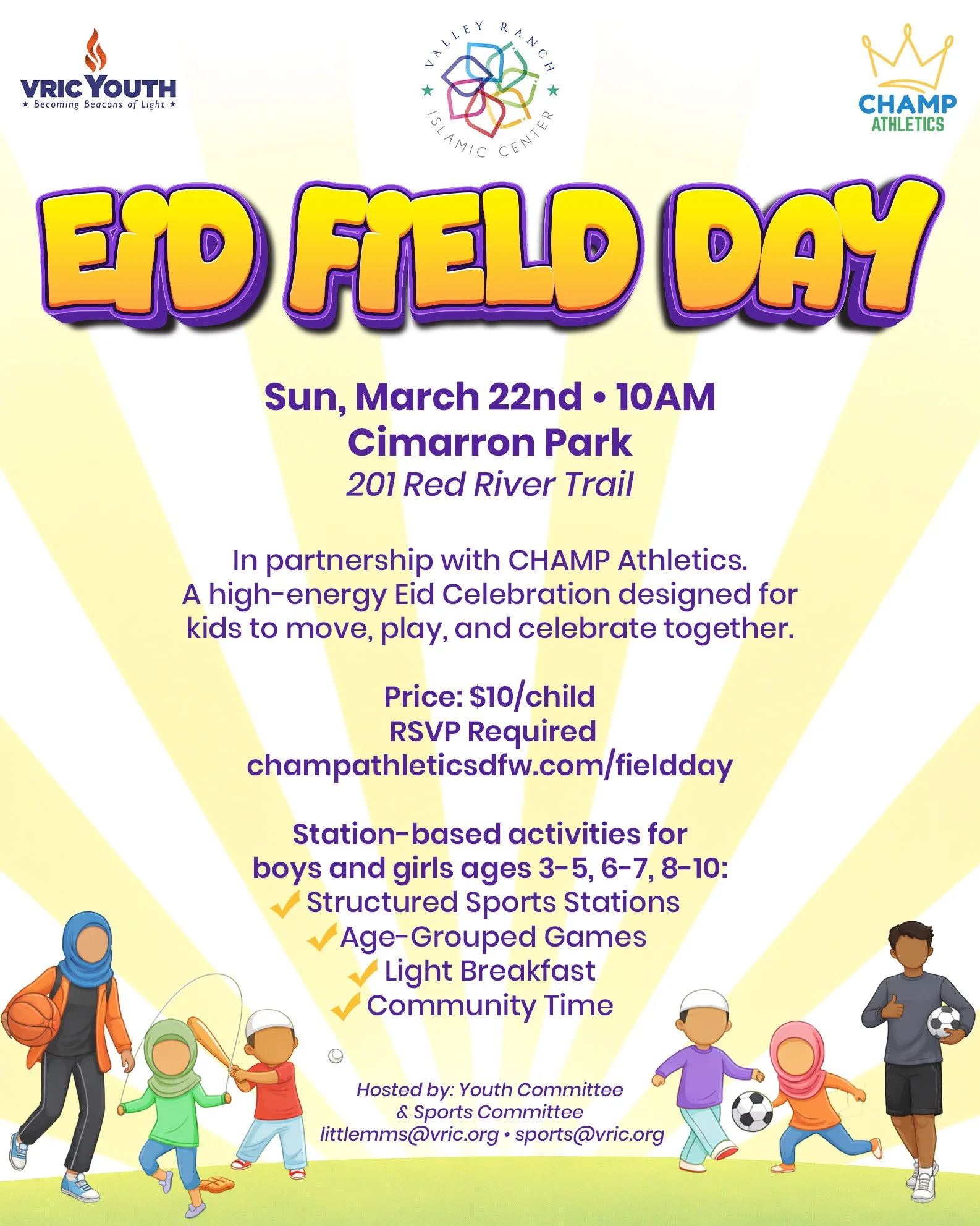 Eid Field Day! In partnership with VRIC Youth, CHAMP Athletics is hosting a high-energy Eid Celebration design for kids to move, play, and celebrate together.